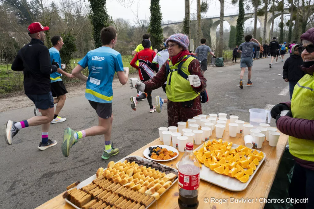 De nombreux bénévoles seront présents sur les points de ravitaillements parcours pour vous servir en eau via le réseau d’eau potable de la ville. Des robinets seront installés et des pichets permettront aux bénévoles de remplir vos contenants.